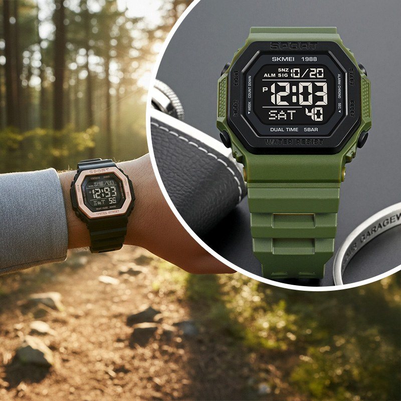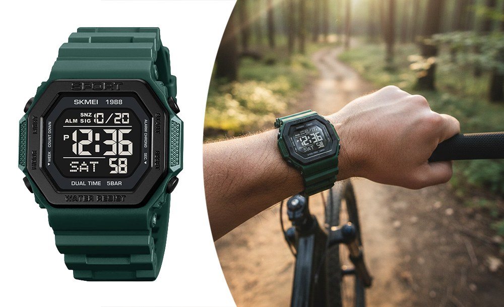 Тактические спортивные часы SKMEI 1988 – идеальный выбор для активной жизни и экстремальных условий. Прочный, ударостойкий корпус выдерживает любые нагрузки, а водонепроницаемость до 50 метров позволяет не снимать аксессуар при плавании, пробежках под дождем или во время водных тренировок.