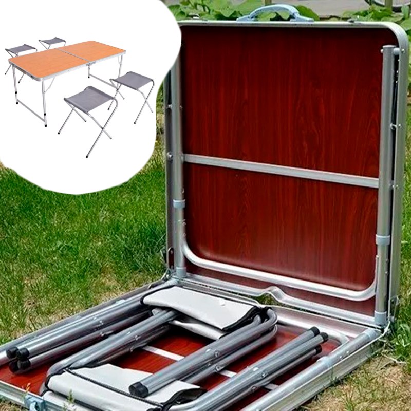 Складной стол для пикника + 4 стула станет незаменимым помощником в походах и на отдыхе – лёгкий, компактный и практичный, он не станет обременительным грузом и значительно преобразит Ваш отдых. Хорошо подойдет для небольших застолий и станет просто незаменим при выезде на природу.