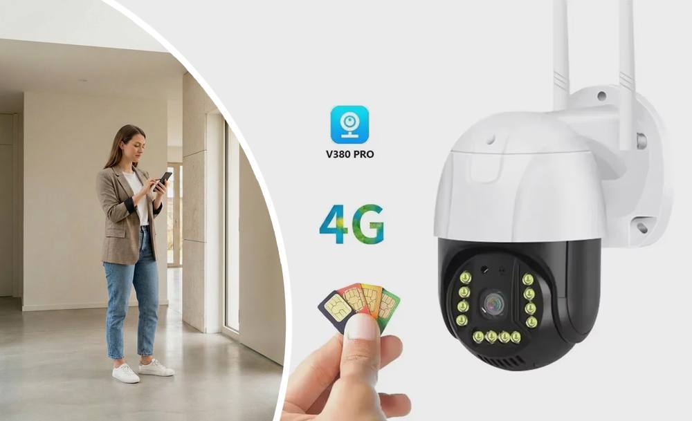 Уличная камера видеонаблюдения V380 Pro – это надежное решение для контроля дома, дачи, склада или стройплощадки без проводного Интернета. Поддержка 4G позволяет устанавливать ее в любом месте, где есть мобильная связь: достаточно вставить SIM-карту.