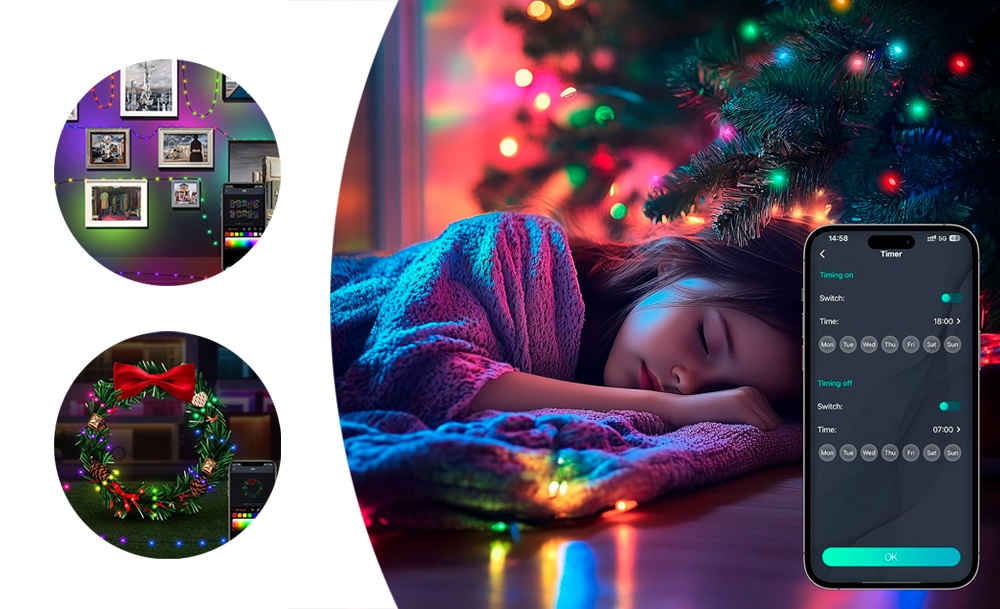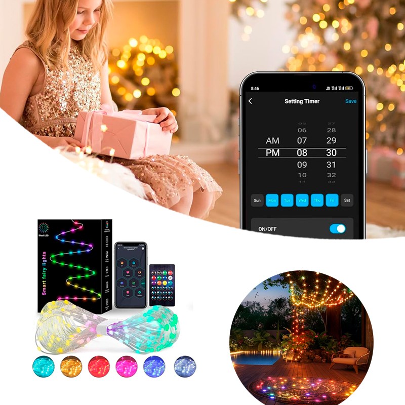 Умная смарт-гирлянда с управлением через смартфон и пульт – это удивительный декоративный элемент, превращающий пространство в яркий оазис света и цвета.