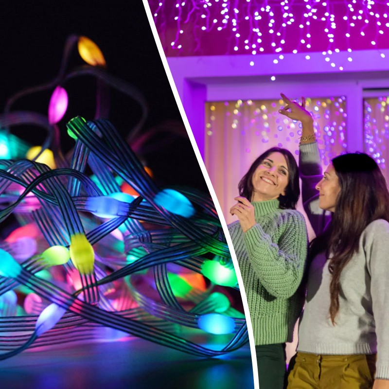 С помощью пульта дистанционного управления или через мобильное приложение вы можете изменять цвета, регулировать яркость и выбирать различные режимы свечения, создавая неповторимую атмосферу в соответствии с вашим стилем и настроением. Гирлянда не боится влаги, дождя, ветра. Ее можно устанавливать дома, в квартире, украшать елку или фасад на улице.