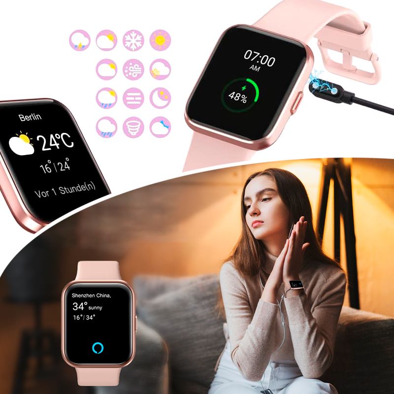 Внешний вид Smart Watch T500 Ligh Rose, качество изготовления и широкий функционал не оставит вас безразличным. Главной особенностью часов T500 является поддержка звонков по Bluetooth. Корпус смарт часов сделан из металла, на нижней части располагаются контакты для зарядки и оптический датчик.