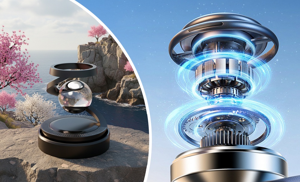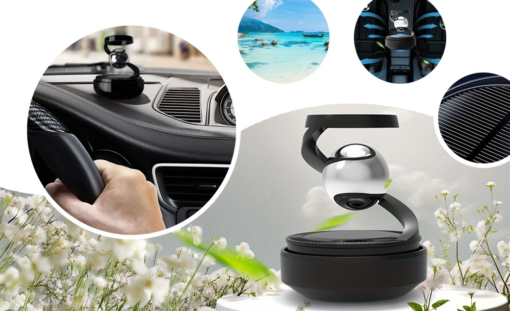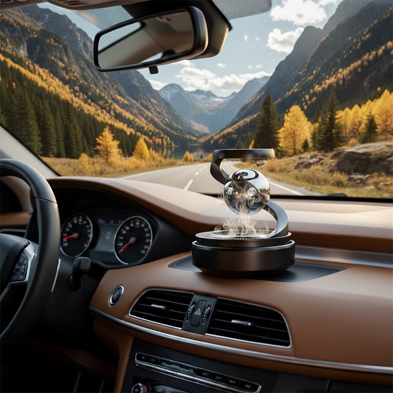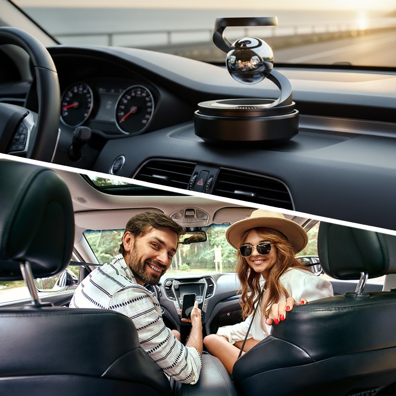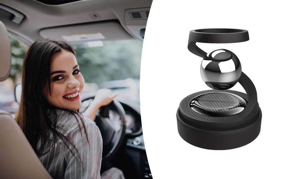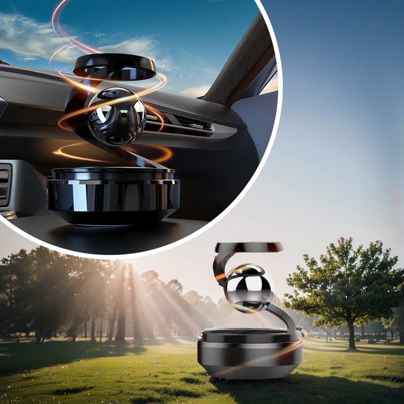 Вращающийся автомобильный ароматизатор Океан на солнечной батарее – стильное решение для тех, кто хочет поддерживать свежесть в салоне без лишних затрат. Солнечная панель запускает плавное вращение левитирующего шара, который равномерно распространяет океанический бриз по всему автомобилю.