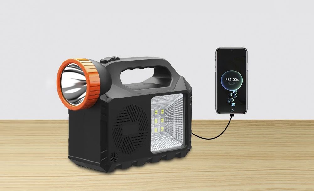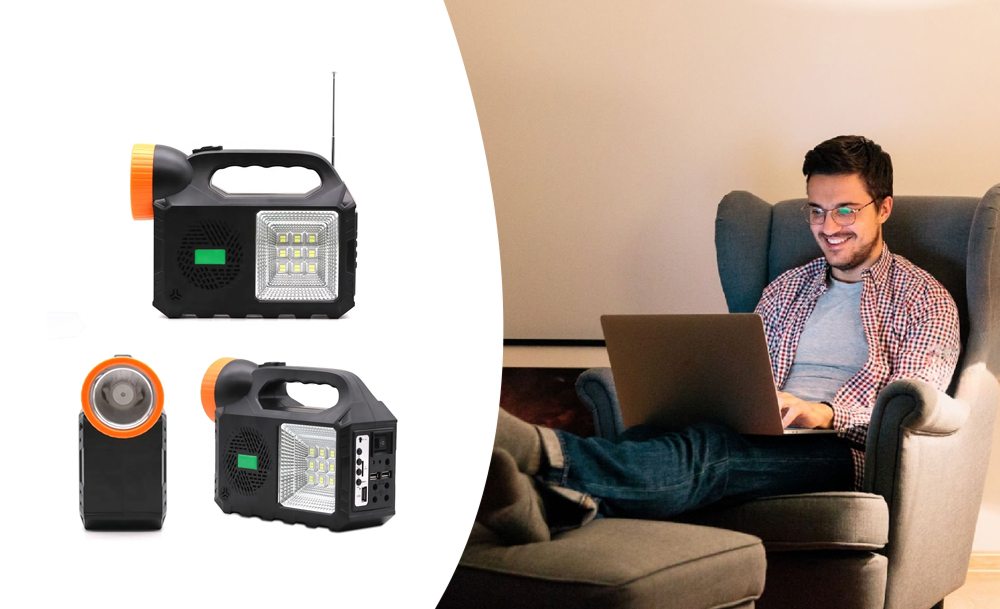 Мощный прожектор, фонарь и 3 яркие лампочки позволяют осветить достаточно большую площадь. Встроенное FM-радио и МP3 дадут возможность слушать музыку и аудиофайлы. А с функцией Power Bank можно зарядить телефоны, чтобы не остаться без связи в самый неподходящий момент.