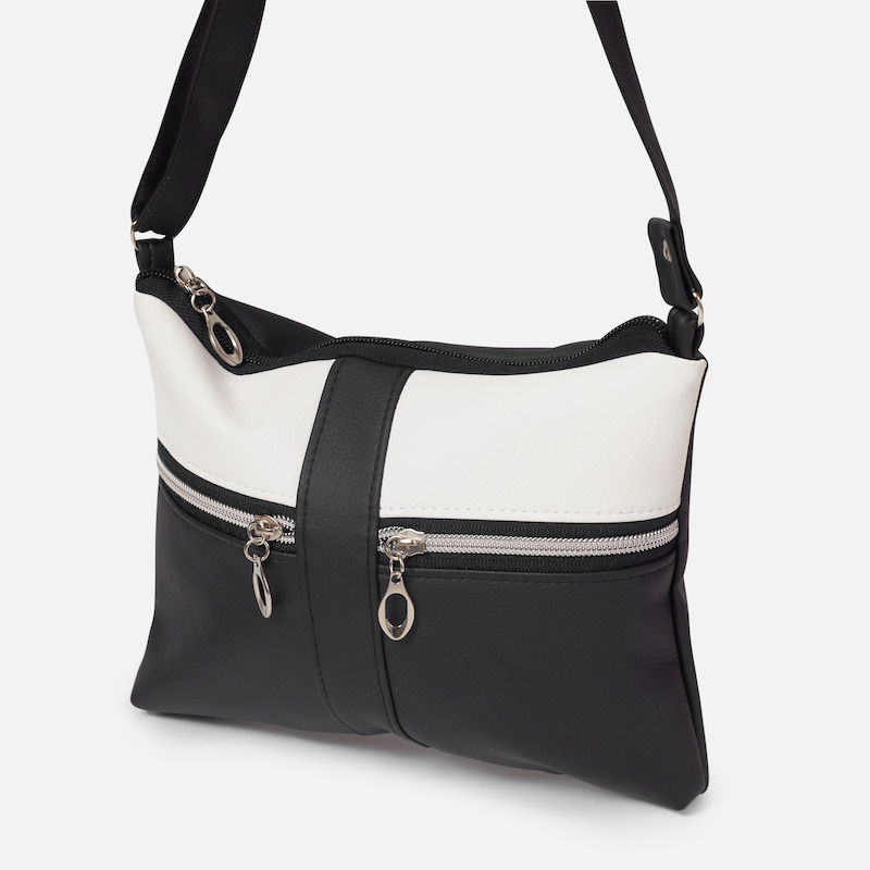 Женская сумка через плечо прекрасно дополнит изысканный образ современной модницы. Стильная и лаконичная, она выполнена из нескольких сочетающихся между собой расцветок с оригинальной вставкой, что позволяет носить ее с разными видами одежды.