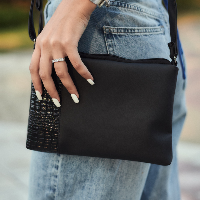 Сумку удобно носить через плечо на прочном удлиненном ремешке. Она снабжена молнией и качественной никелированной фурнитурой, которая не потемнеет и сохранит свой вид. Сдержанный дизайн без ярких деталей долго будет актуальным и идеально дополнит модный образ.
