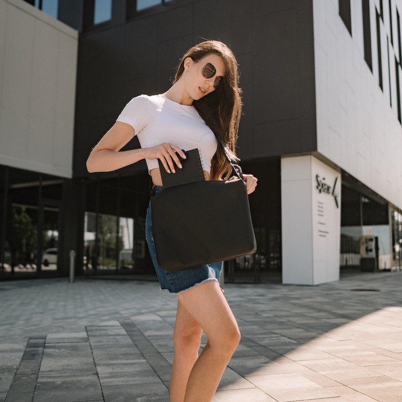 Женская сумка для ноутбука и документов ND002 выполнена в минималистском стиле, при этом ее дизайн сочетает в себе лаконичность и функциональность. Благодаря классической черной расцветке и универсальной форме, эта сумка прекрасно впишется в гардероб.