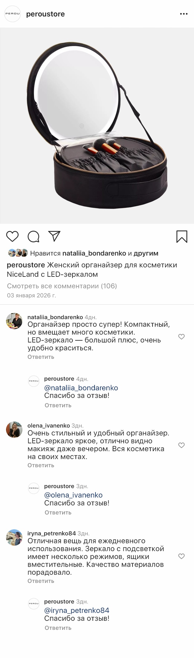 Органайзер для косметики NiceLand – это персональный бьюти-уголок, который всегда с тобой. Встроенное зеркало со светодиодами имеет три режима освещения: холодный, натуральный и теплый. Яркость LED-подсветки легко регулируется под любые условия.