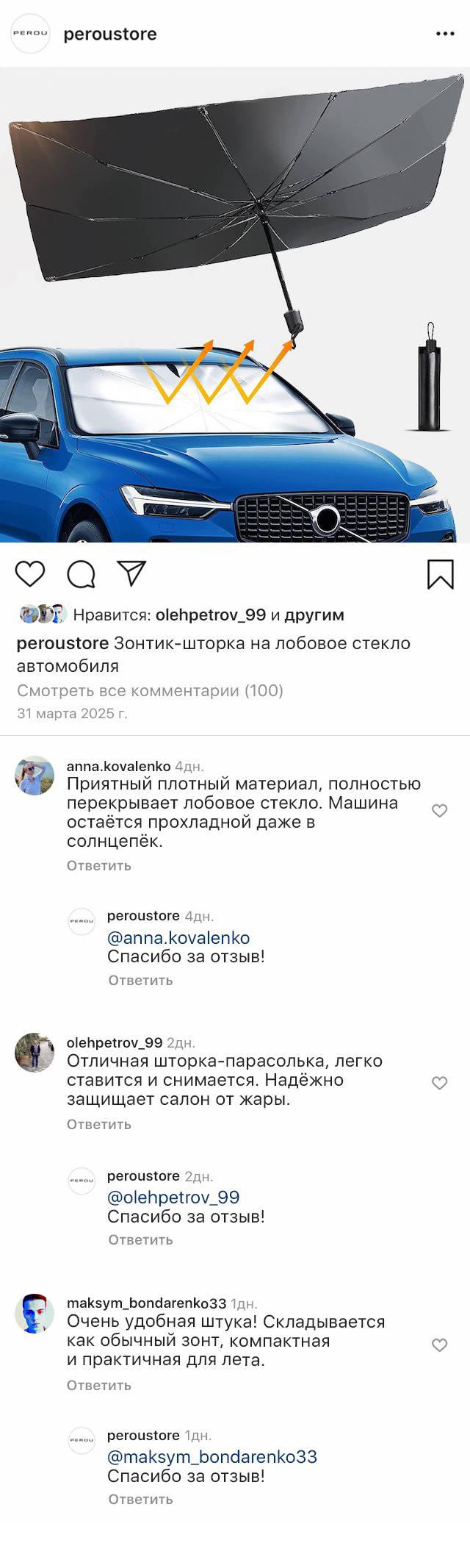 Компактный, стильный и удобный — складывается как обычный зонт и не занимает много места. Sunshade – мелочь, которая спасает в жару. Хочешь комфорт в любую погоду? Не сомневайся – бери!