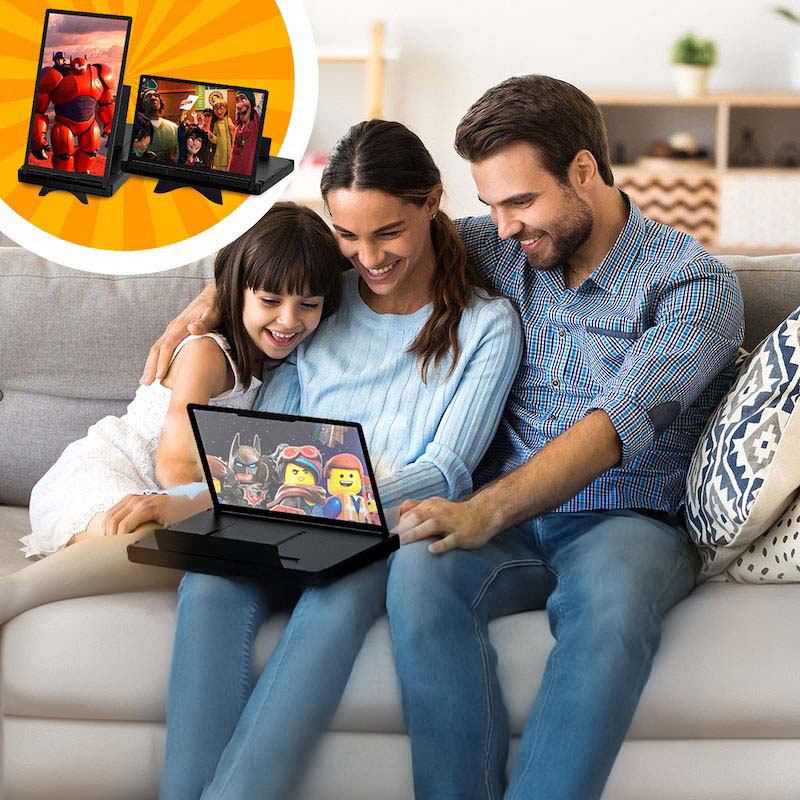 9D збільшувач екрану перетворить телефон на справжній планшет або ноутбук, роблячи зображення більшим в кілька разів. Перегляд улюблених фільмів, читання книг або пошук інформації в інтернеті стане комфортним та безпечним, так як розташування екрану на оптимальній для очей відстані значно знизить їхню стомлюваність і подразнення.