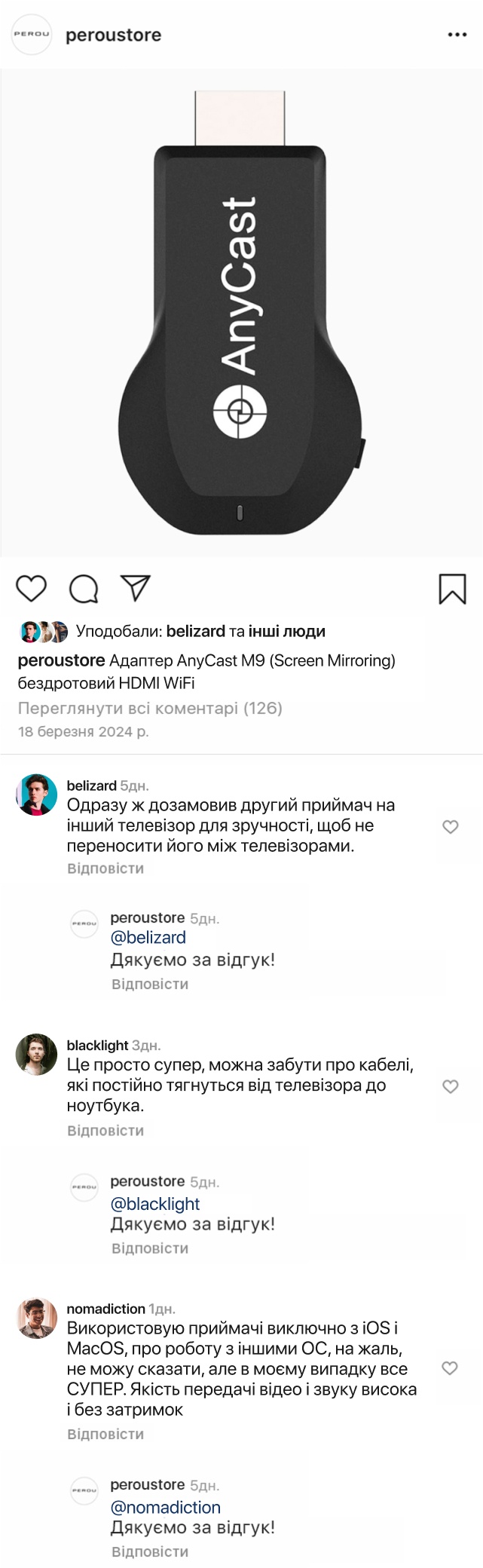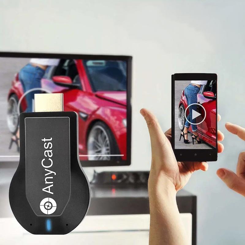AnyCast — це оновлений адаптер для відображення екрана смартфона, планшета або комп’ютера на великому екрані телевізора або проектора без проводів Wi-Fi. Пристрій не вимагає наявності Wi-Fi на телевізорі, достатньо мати роз’єм HDMI.