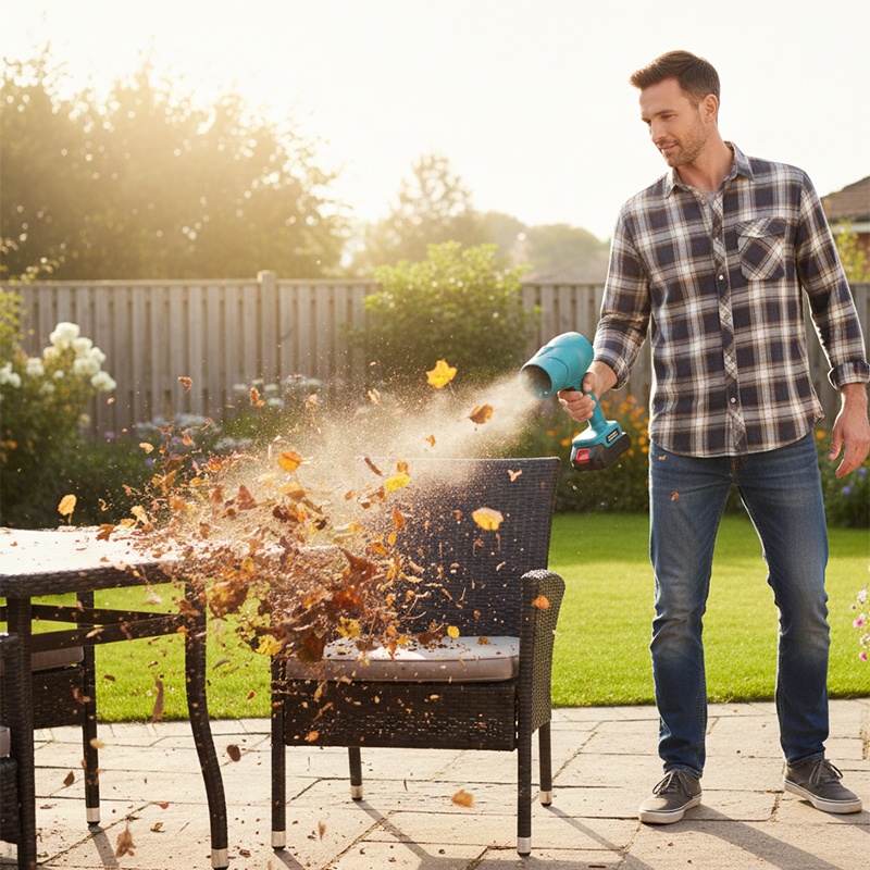 Акумуляторна повітродувка Mini Jet Turbo Fan 24V – компактний та потужний інструмент для акуратного прибирання. Сильний потік повітря швидко здуває листя, пил, пісок та дрібне сміття, залишаючи чисту поверхню. Вбудований акумулятор забезпечує повну свободу рухів без дротів та обмежень.