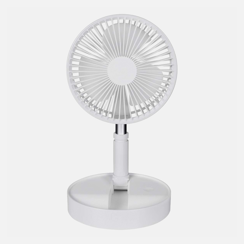 Особливістю цієї моделі портативного вентилятора є телескопічна конструкція, яка дозволяє використовувати його як у настільному так і підлоговому варіантах під різними кутами. Потужна акумуляторна батарея забезпечує до 5 годин роботи в залежності від вибраного режиму.