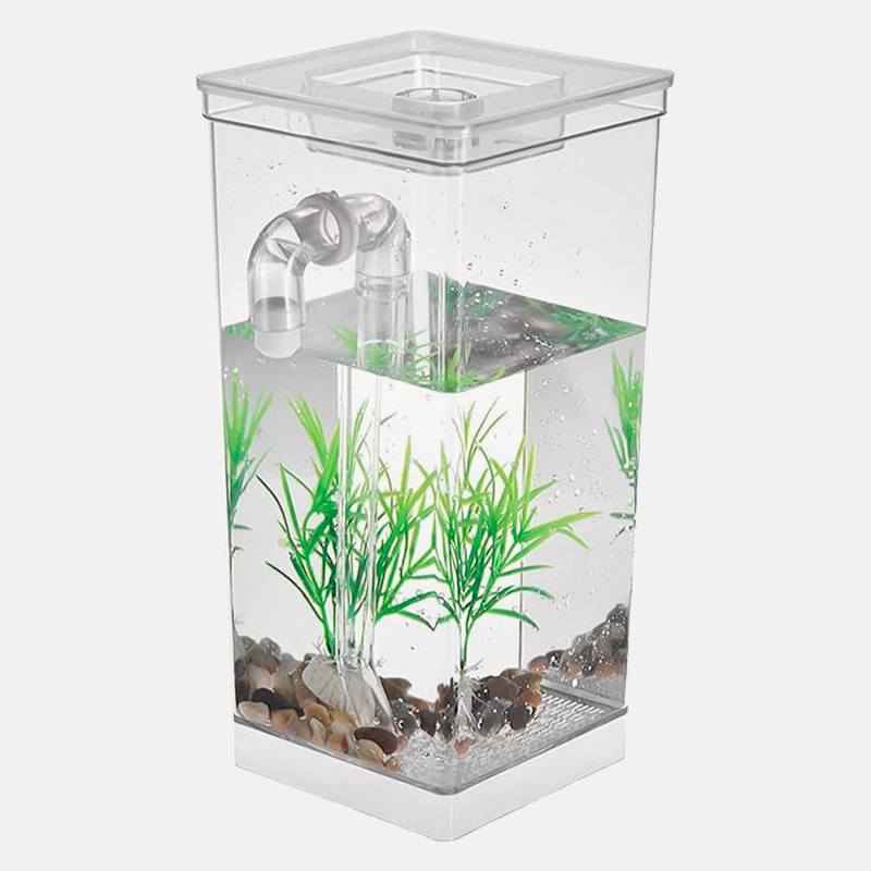 Акваріум, що самоочищається My Fun Fish – зручне та стильне рішення для дому. Виготовлений із прозорого ударостійкого пластику, безпечного для дітей. Оснащений унікальною системою самоочищення – просто доливайте чисту воду. Брудна вода виводиться через спеціальну трубку без зайвого клопоту. Стіни акваріума залишаються чистими, не потребуючи частого очищення від нальоту.