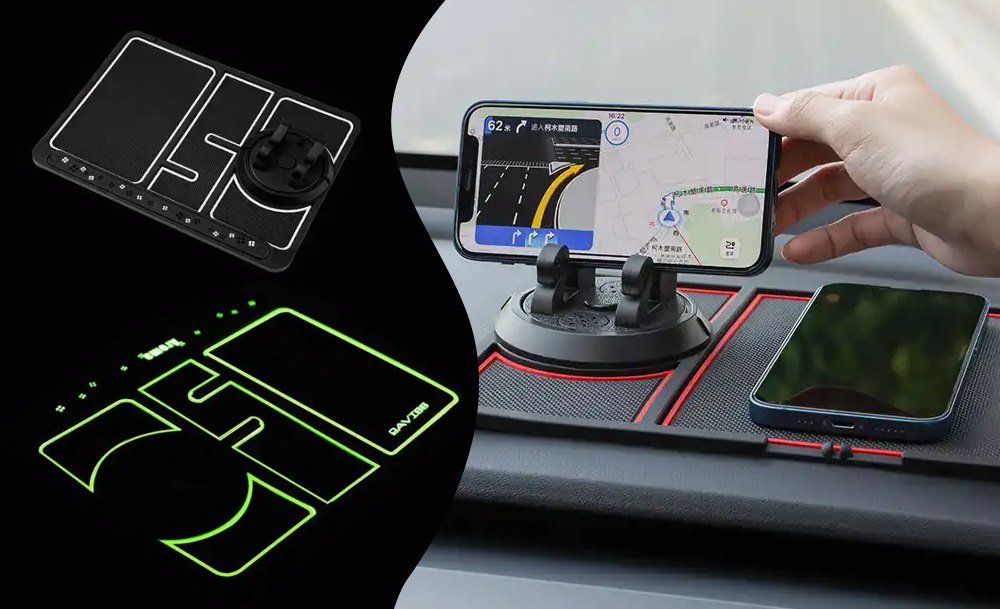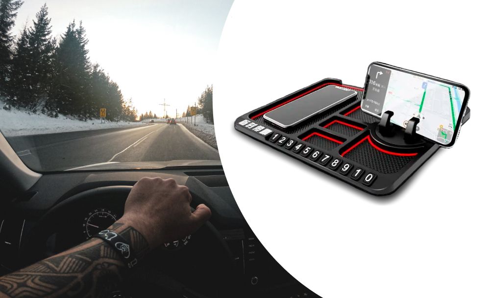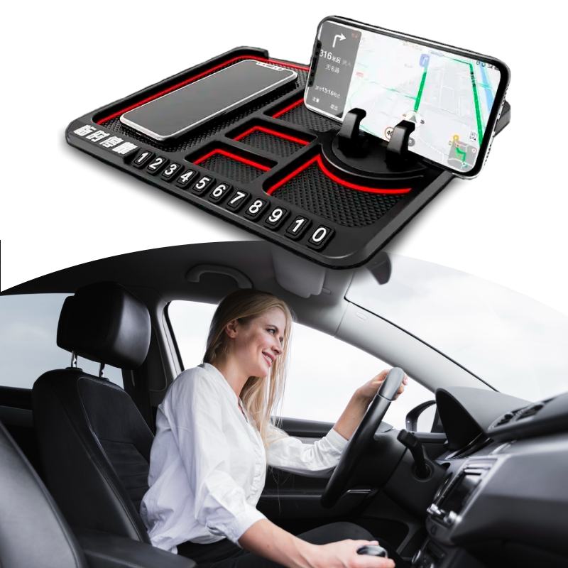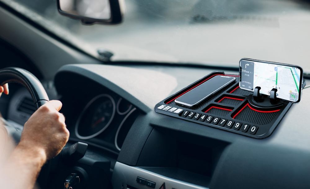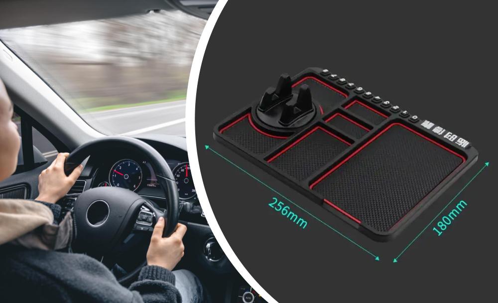 Липкий протиковзкий килимок на панель в авто дозволить навести лад і не розгубити речі навіть під час руху. На ньому зручно та компактно розмістяться тримач зі смартфоном, ключі та інші дрібні предмети, а також візитниця для номера телефону на випадок тимчасового паркування.