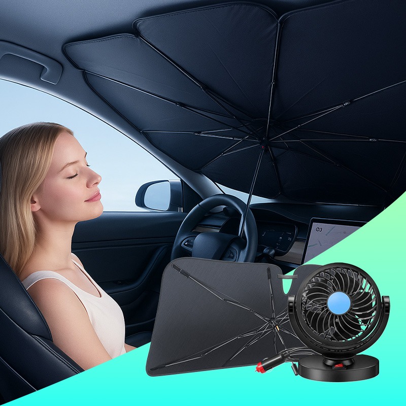У комплекті — парасолька-шторка на лобове скло, яка захищає від сонячних променів і запобігає перегріванню салону. Проста установка — всього за кілька секунд. Ідеальне рішення для комфортних поїздок у теплу пору року!