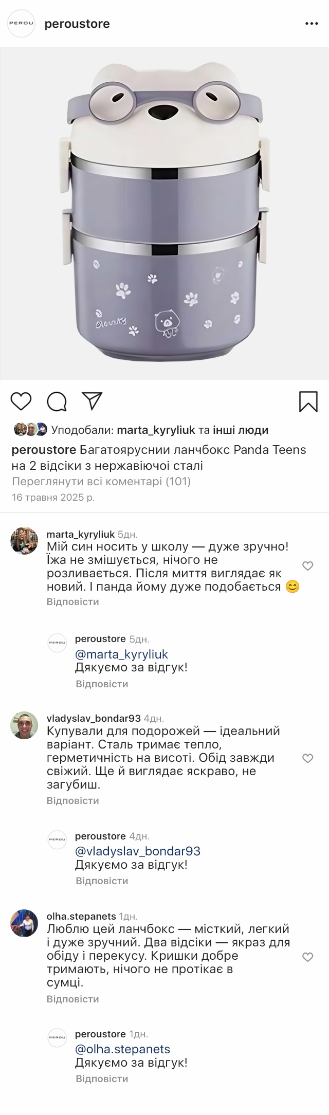 Виготовлений із харчової нержавіючої сталі, він не вбирає запахів і не змінює смак їжі. Надійне кріплення забезпечує герметичність, а гладка поверхня легко миється навіть без посудомийної машини. Panda Teens — це турбота про здорове харчування щодня.