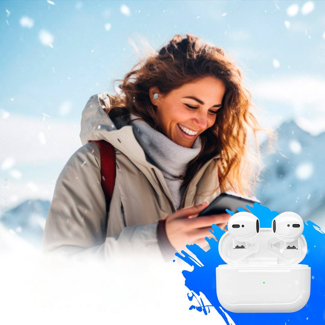 Навушники із сенсорним керуванням автоматично підключаються при відкритті зарядного кейсу, забезпечують стабільний стійкий сигнал у радіусі 10 метрів та працюють без підзарядки 4 години. М’які силіконові амбушури зручно сидять у вухах, що забезпечує можливість їх використання протягом цілого дня.
