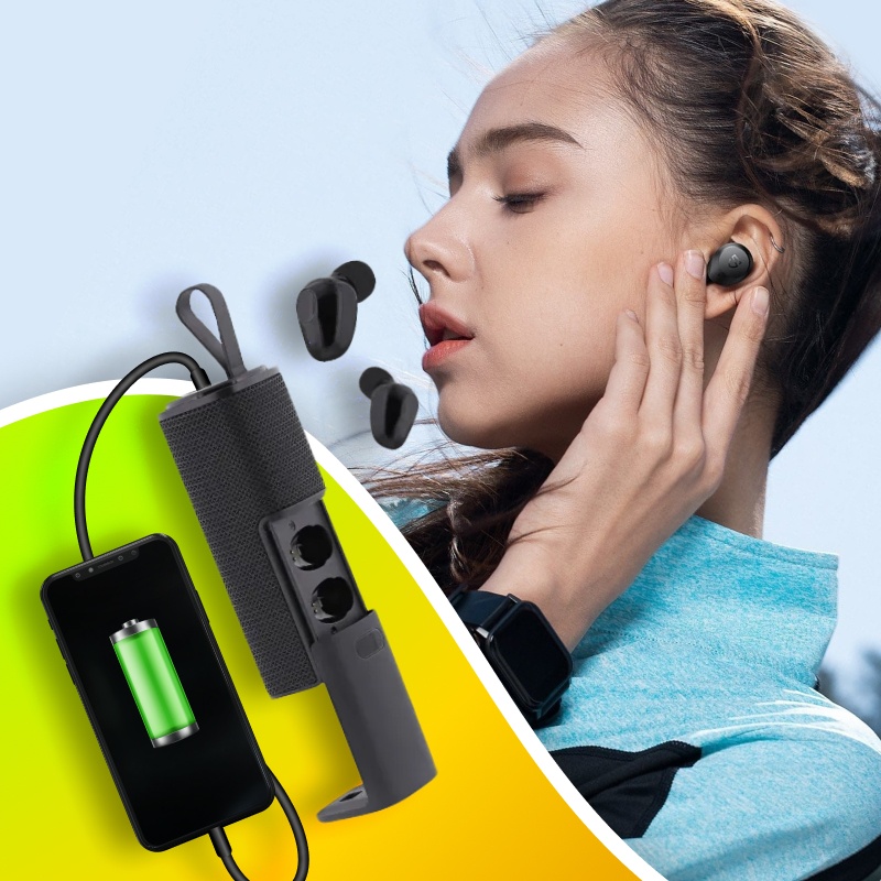 Вбудований акумулятор дозволяє одночасно заряджати мобільний телефон або інші гаджети та слухати музику, яка автоматично зупиняється та перемикається під час надходження дзвінка. Колонка легка та компактна, а сітчастий корпус захищає від вологи та пилу.