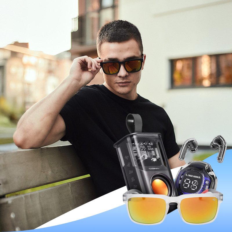 Захистіть свій погляд зі сонцезахисними окулярами SP001 із фільтром UV400, а для приємного фону всюди візьміть із собою портативну колонку A036 — вона невелика, але звучить гучно та чисто. Разом — це набір для спокійного відпочинку та гарного настрою.