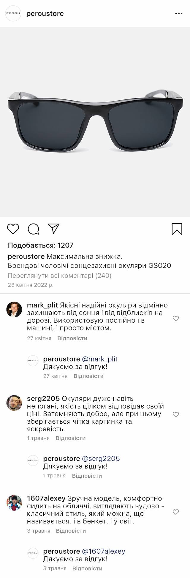 Оправа з високоякісних матеріалів та поляризаційні лінзи надійно захищають очі від шкідливого ультрафіолету, яскравих сонячних променів та відблисків після дощу, що робить ці окуляри незамінним аксесуаром у будь-яку погоду.