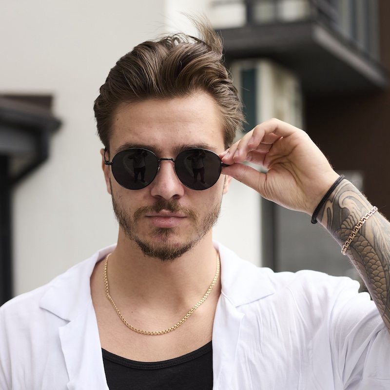 Брендові сонцезахисні окуляри UG001 — класика, що не втрачає актуальності. Стильний витончений дизайн округлої форми пасуватиме як чоловікам, так і жінкам будь-якого віку. Металева оправа та тонкі лінзи чорного або коричневого кольору створюють елегантний образ і доречно виглядатимуть у будь-якій ситуації.