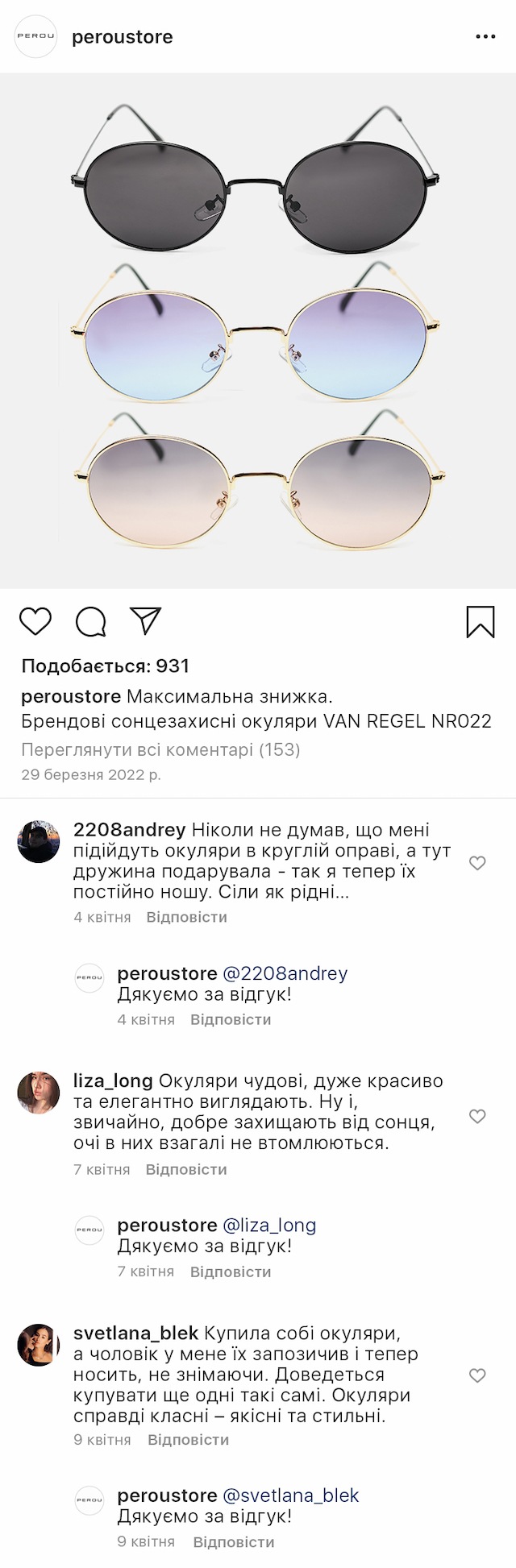 Затемнені лінзи надійно захистять очі від яскравих сонячних променів, ультрафіолету та відблисків після дощу. Зображення не спотворюється, залишаючись чітким та контрастним у будь-яку погоду.