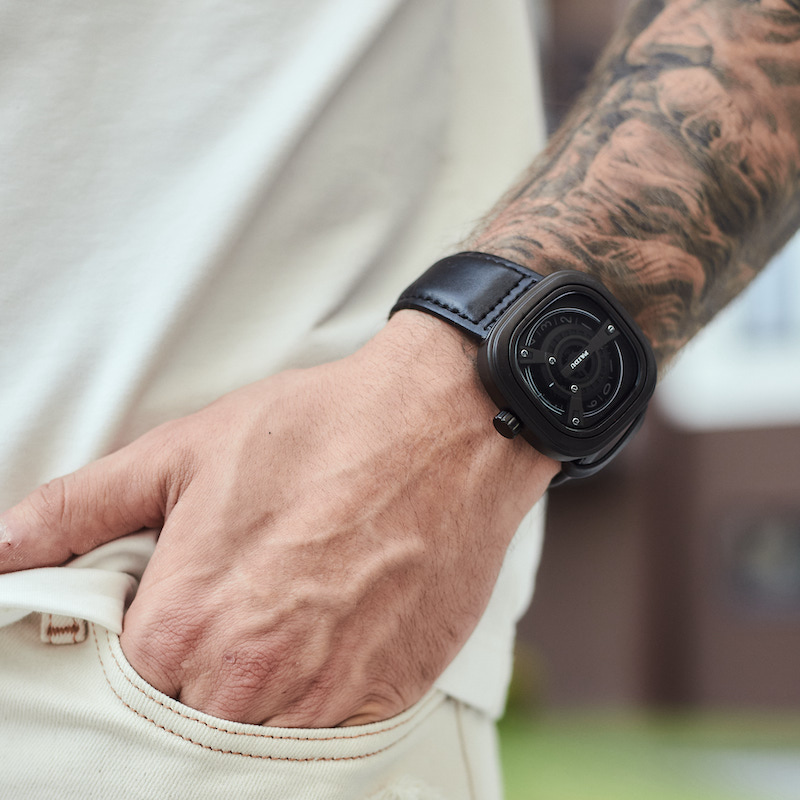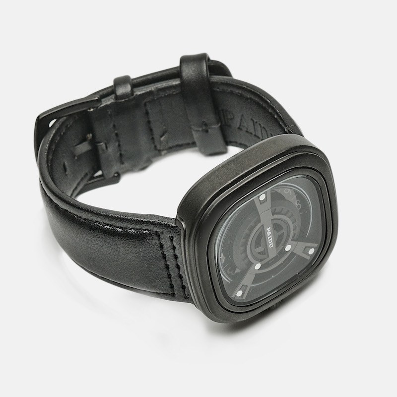 Циферблат оснащений порожнистою поворотною пластиною з календарем на кожен день, за рахунок чого годинник виглядає неординарно і креативно. Кварцовий механізм відрізняється високою точністю та якістю, а ремінець з натуральної шкіри зручно та міцно утримує годинник на руці. Корпус з удароміцних та водостійких матеріалів забезпечує практичність та надійність.