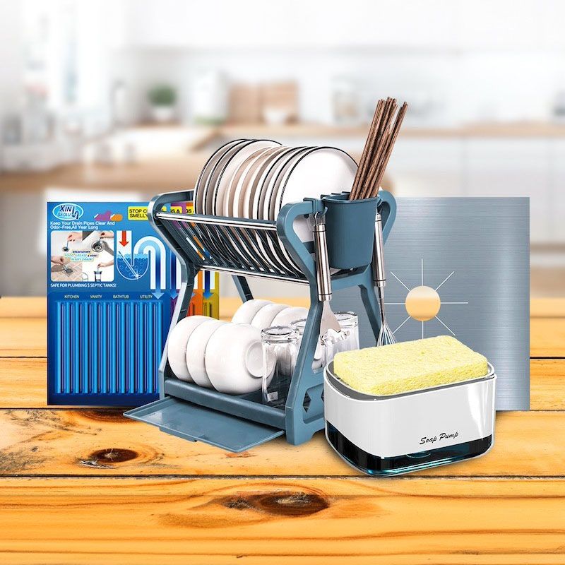 Дворівнева сушарка для посуду – це універсальна підставка для компактного зберігання тарілок, чашок та келихів, ложок, вилок, ножів та інших кухонних аксесуарів. Органайзер для мочалок з дозатором засобу для миття посуду допоможе зберегти чистоту на кухні, і не займе багато місця.