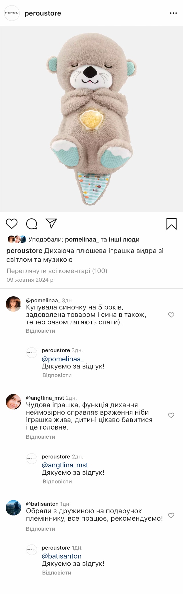 Іграшка для засинання Видра забезпечить затишну атмосферу і допоможе з укладанням малюка вдома, в дорозі і де завгодно. Взявши з собою іграшку в будь-яку поїздку, ви забезпечите дитині відчуття звичного домашнього комфорту і тепла, де б ви не знаходилися.