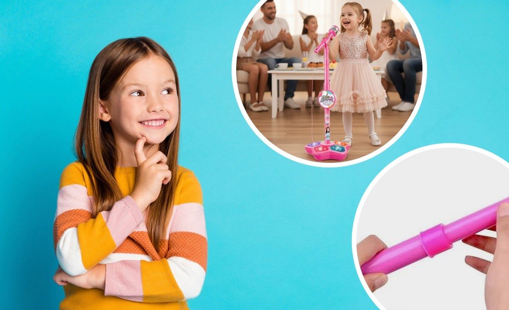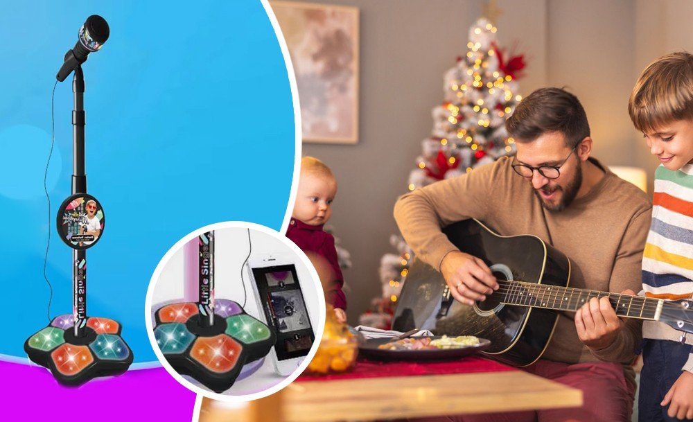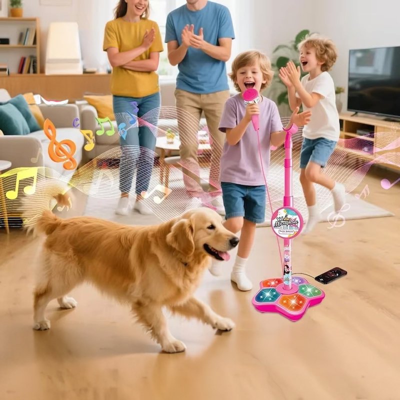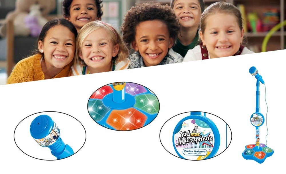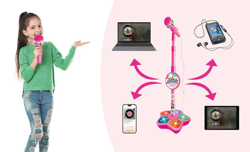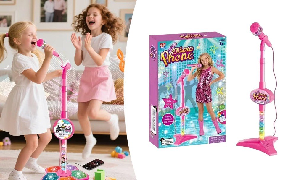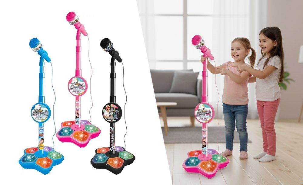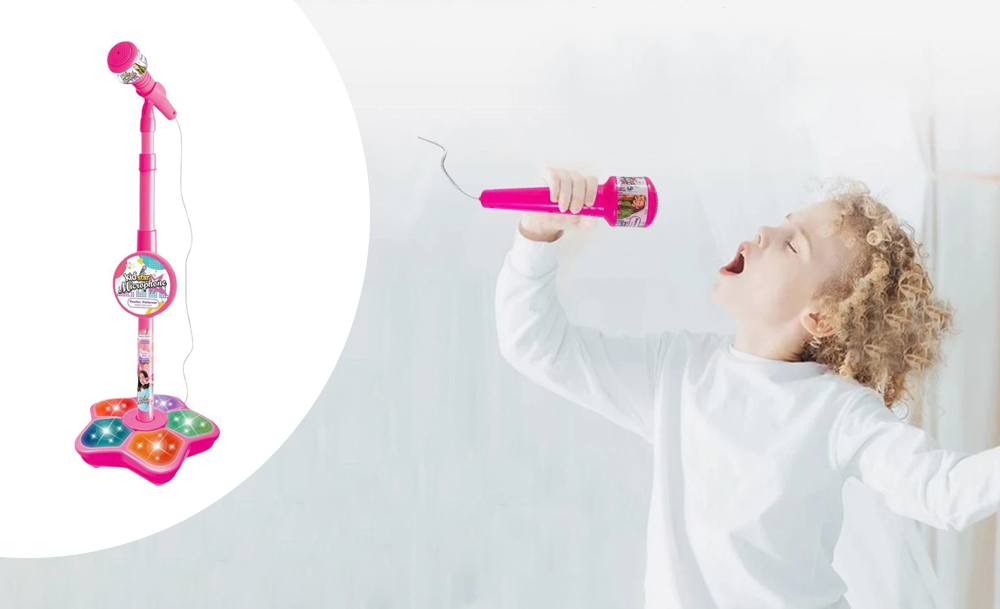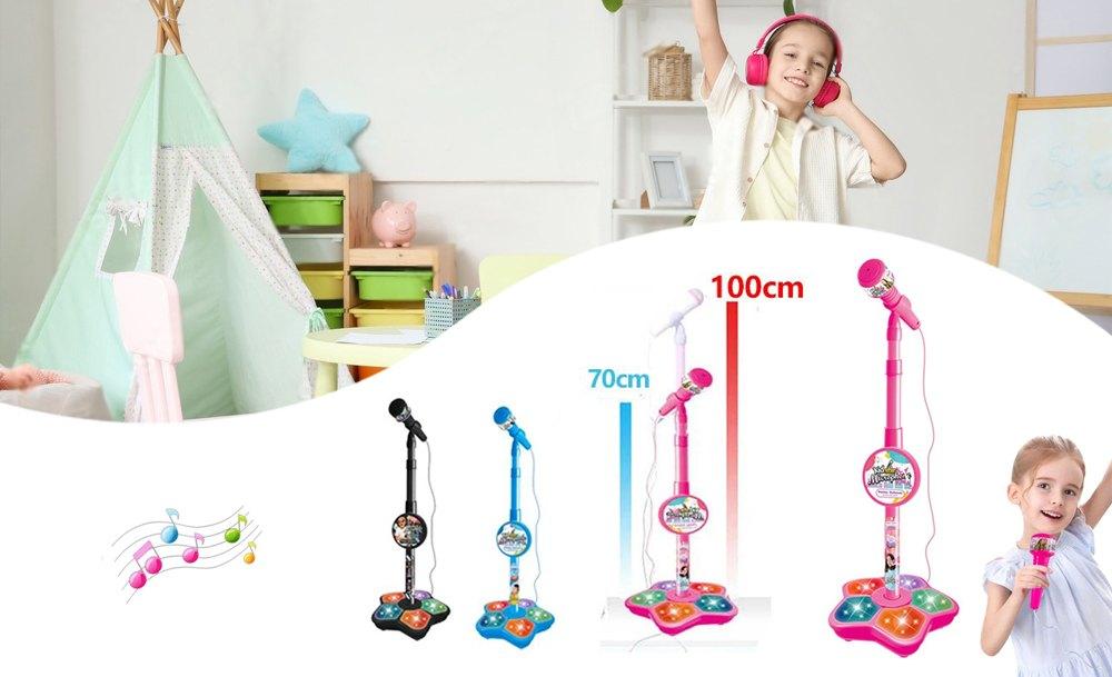 Яскрава підсвітка створює святкову атмосферу, а вбудовані музичні ефекти роблять кожен виступ ще веселішим та цікавішим. Регульована стойка та зручний дизайн забезпечують комфортне використання для дітей різного віку. Чудовий подарунок для домашніх концертів, рольових ігор та творчого дозвілля.