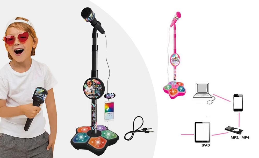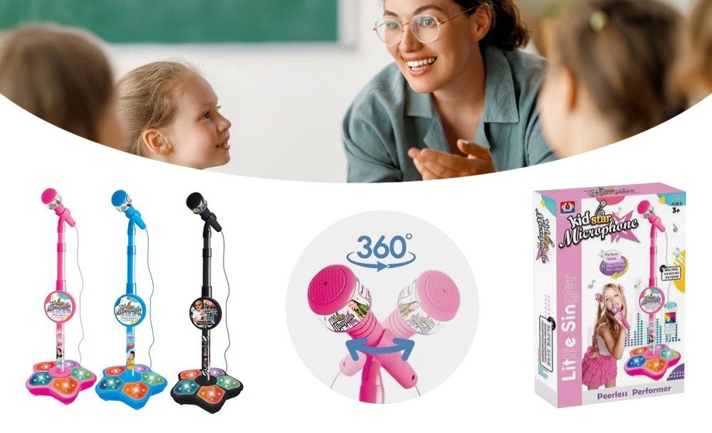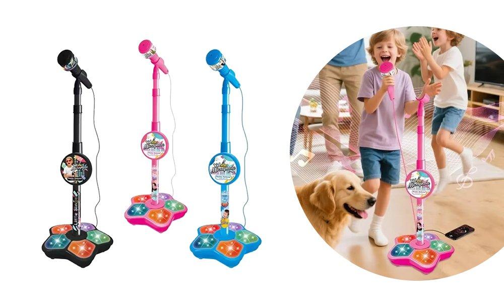 Дитячий мікрофон на стойці Little Singer з музичними ефектами та підсвічуванням — це ідеальний набір для маленьких артистів! Мікрофон дозволяє дітям співати улюблені пісні, розвивати музичні здібності та впевненість у собі.