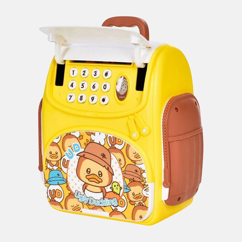 Ця скарбничка-рюкзак “Ugly Duckling” з барвистим дизайном здивує будь-яку дитину! Адже це не не просто скарбничка — це справжній дитячий сейф, який перетворює накопичення на захопливу гру. Головною особливістю скарбнички є функція автоматичного затягування купюр, що імітує роботу справжнього банківського термінала.