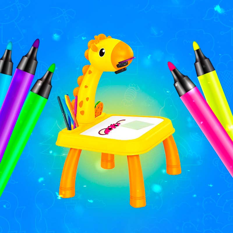 Дитячий столик-проектор для малювання – це універсальний пристрій для розвитку творчості та фантазії дітей молодшого шкільного віку, а також розвитку дрібної моторики рук і навчання правильному сприйняттю кольору у малюків. Столик оснащений лупою та лампою, яка проектує на поверхню картинки зі слайдів, а яскраві різнокольорові фломастери дозволяють розфарбувати їх, використовуючи власну уяву.