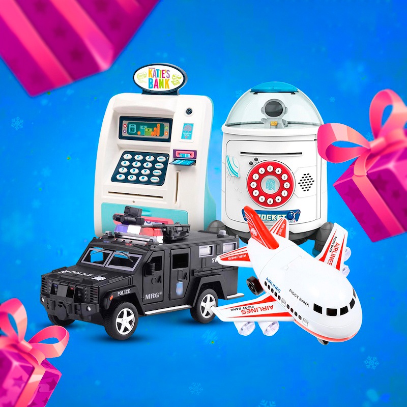 Дитяча електронна скарбничка-сейф представлена у 4х варіантах – поліцейська машина, космічна ракета, літак та банкомат. Це не тільки цікава та оригінальна іграшка, а й чудова можливість познайомити дитину з накопиченням кишенькових грошей та їхньою економією.