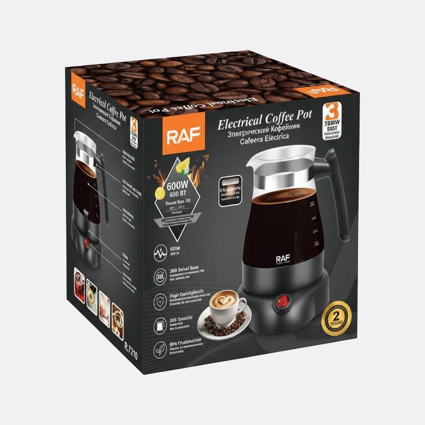 Електрична турка RAF R.7210 — зручна скляна кавоварка для швидкого приготування ароматної кави вдома або в офісі. Прозорий термостійкий корпус дозволяє контролювати процес заварювання, а вбудований захист від перегріву забезпечує безпечну експлуатацію.
