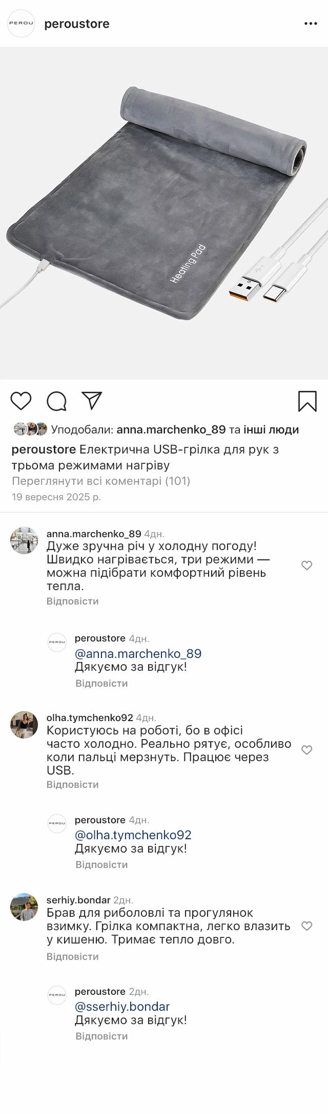 Заряджається грілка через USB, що робить її екологічною та зручною у використанні. Вбудований акумулятор забезпечує до 8 годин безперервної роботи, а функція автоматичного вимкнення забезпечує абсолютну безпеку.
