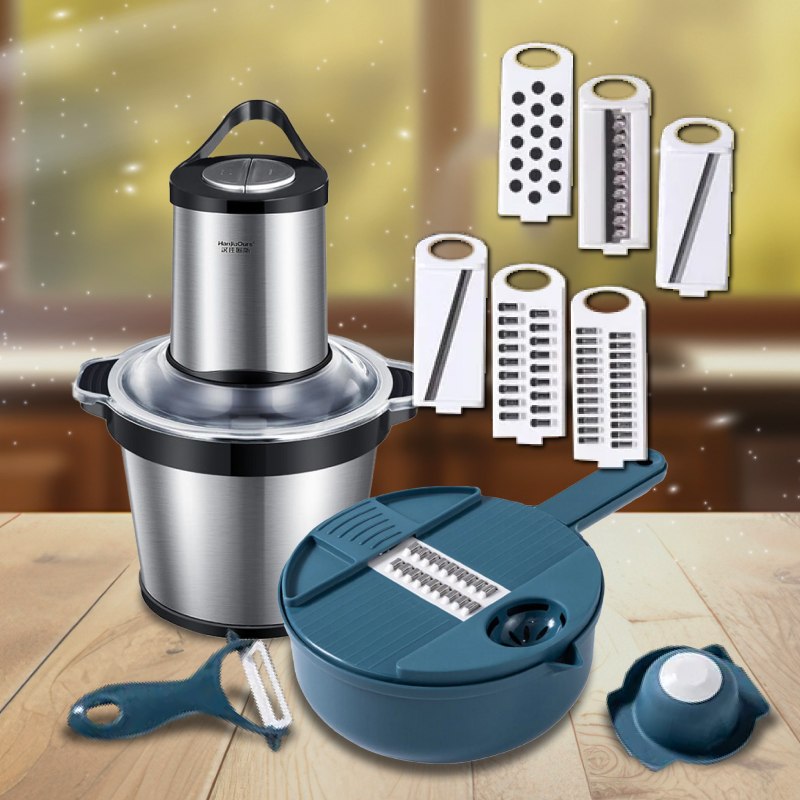 Овочерізка – це сучасне рішення, що дозволяє скоротити час нарізки та полегшити працю господині. Насадки допоможуть подрібнити продукти до потрібного розміру – натерти на дрібній тертці тверді сири та горіхи, порізати крупніше сирі та варені овочі для салату або пошаткувати слайсами.