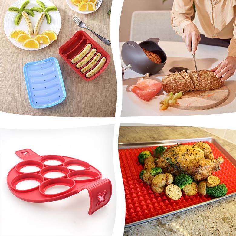 Силіконова форма для ковбасок дозволяє обрати будь-який спосіб приготування – в духовці, мікрохвильовій печі або на пару, значно скорочуючи час і полегшуючи процес готування. Силіконова форма для випічки хліба, м’яса або риби без додавання масла зробить страви корисними і неймовірно смачними – хрустка скоринка зовні і соковита м’якоть всередині.