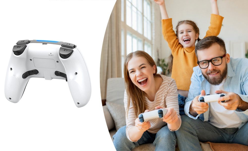 Бездротовий геймпад Data Frog PS-P02 — зручний та стильний контролер для ПК і PS4, який робить гру комфортною та захопливою. М’які стики, чутливі тригери та вібровідгук допомагають повністю поринути в процес. А додаткові задні кнопки дозволяють виконувати дії швидше та зручніше, не відволікаючись від геймплею.