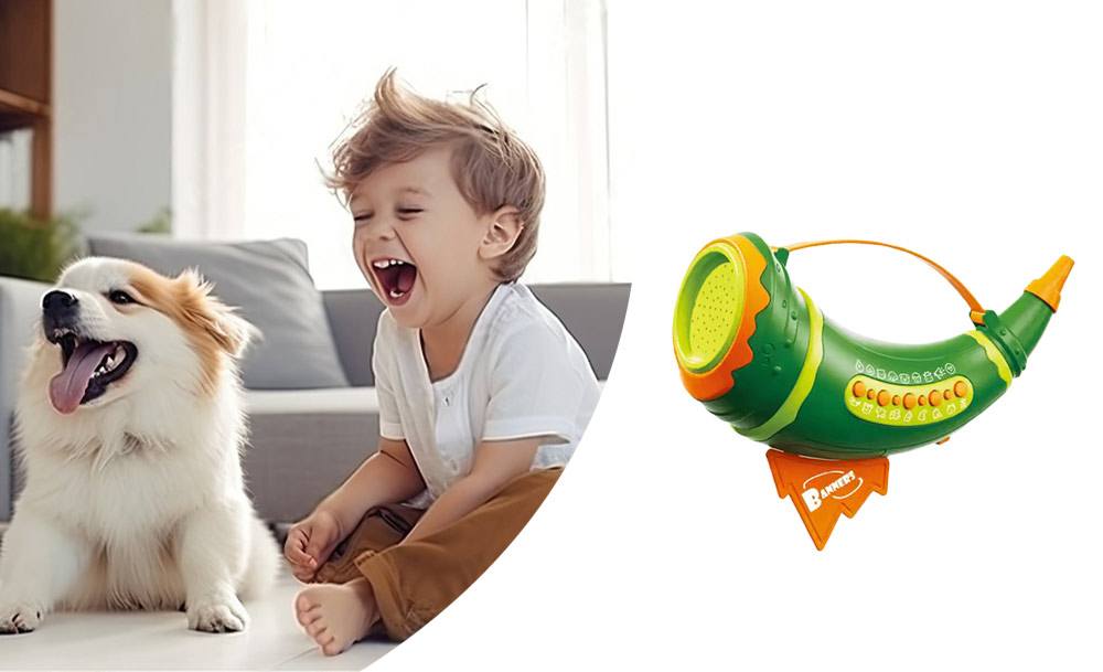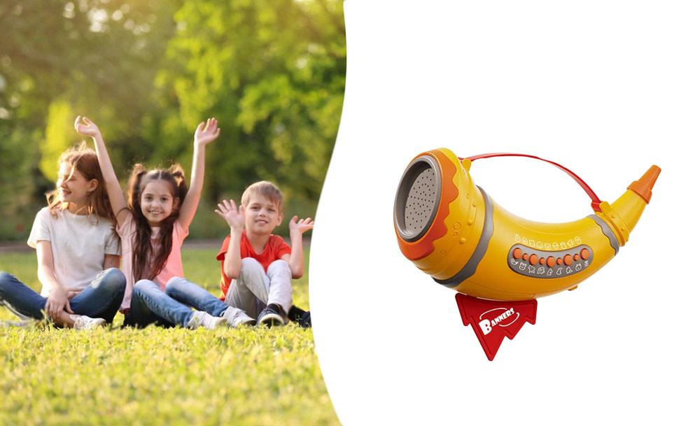 8-дюймовий ріг не тільки робить звуки тварин, але й допомагає тренувати дихання, маючи систему 5-рівневих вогнів, які показують силу дихання. Ця іграшка ідеально підходить для раннього навчання, розвиваючи у дітей слухові навички, розуміння навколишньої природи та уяву.