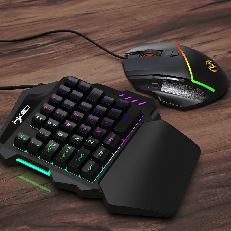Ігрова клавіатура та мишка 198I G506 – чудовий набір для відеоігор, який виготовлений з ударостійкого АБС-пластику чорного кольору. Світлодіодне підсвічування перемикається поєднанням клавіш FN+ESC на сім різних кольорів, що дозволяє насолоджуватися ігровим процесом у будь-який час доби.