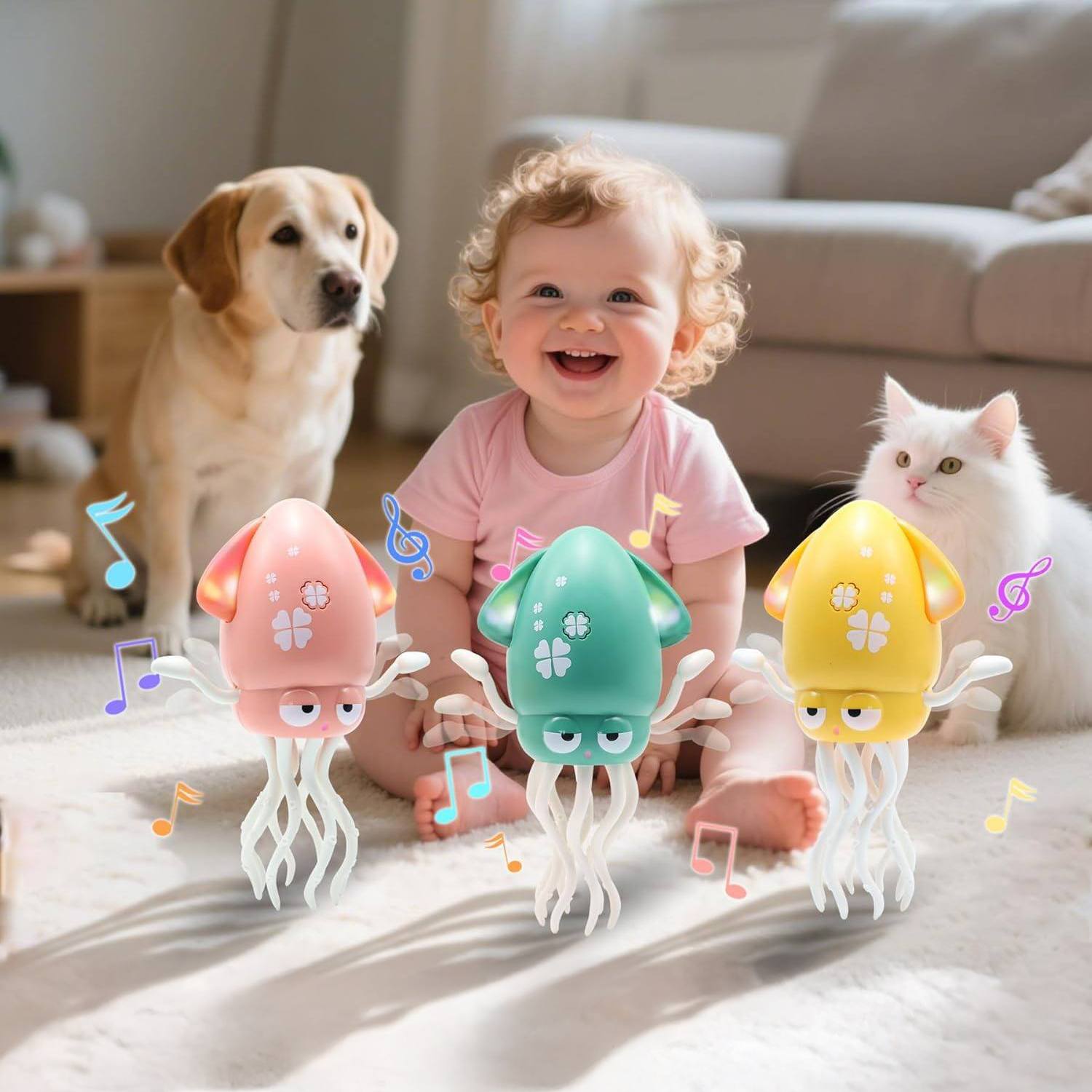 Інтерактивний танцюючий восьминіг — це яскрава та весела іграшка для активної гри! Він світиться різнокольоровими вогнями, відтворює веселі мелодії та рухається на маленьких колесах, шевелить лапками, створюючи справжнє шоу просто у вас вдома.