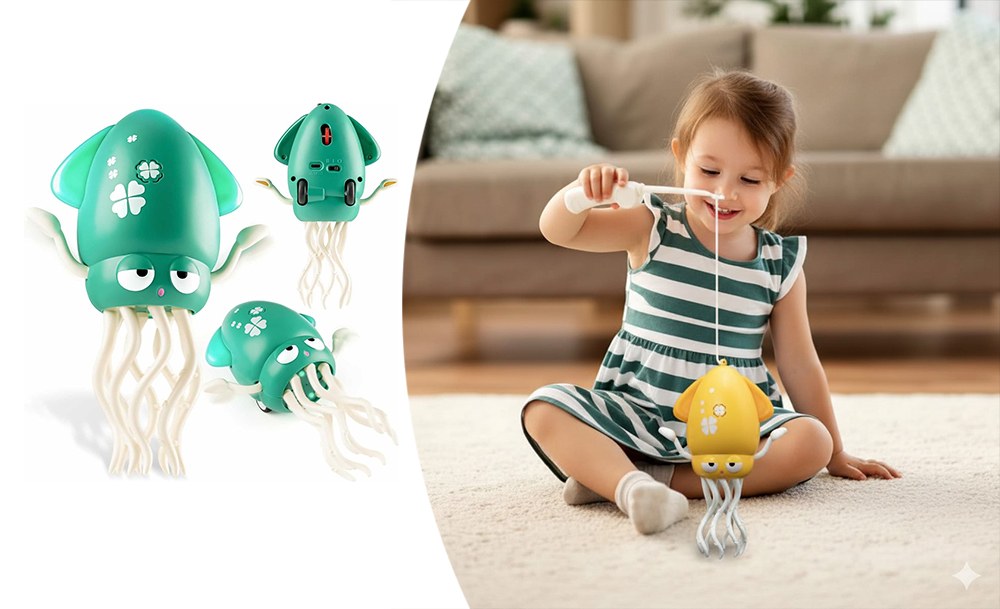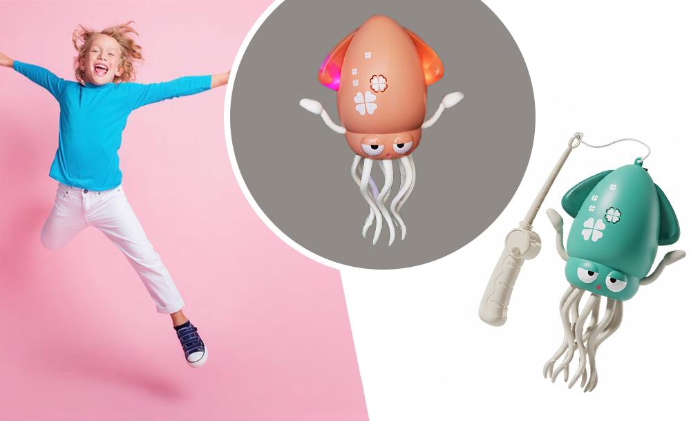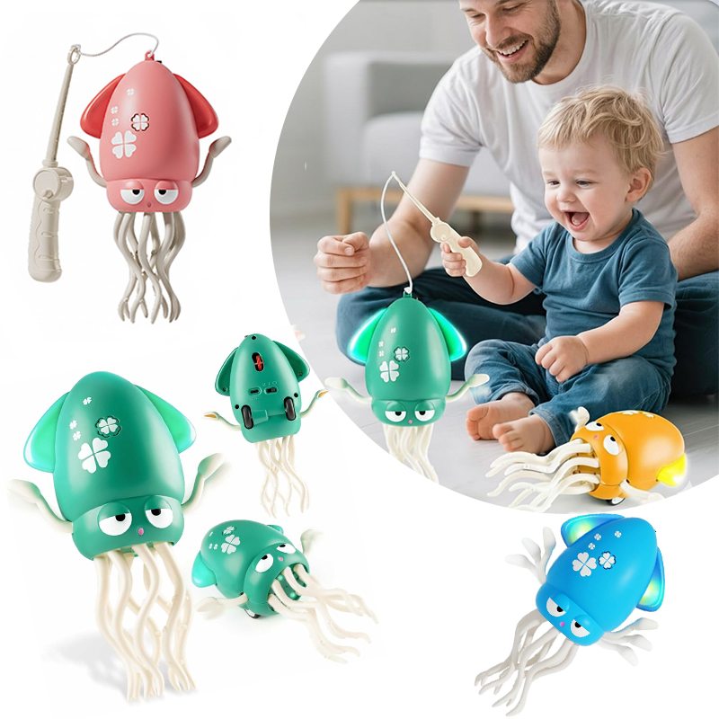 У комплекті є спеціальна вудочка з гачком, щоб дитина могла ловити восьминога та влаштовувати захопливі ігри. Іграшка пластикова, легка та безпечна для дітей, ідеально підходить для гри вдома. Це чудовий спосіб розвивати моторику, увагу та подарувати дитині масу радості, веселощів і яскравих емоцій!