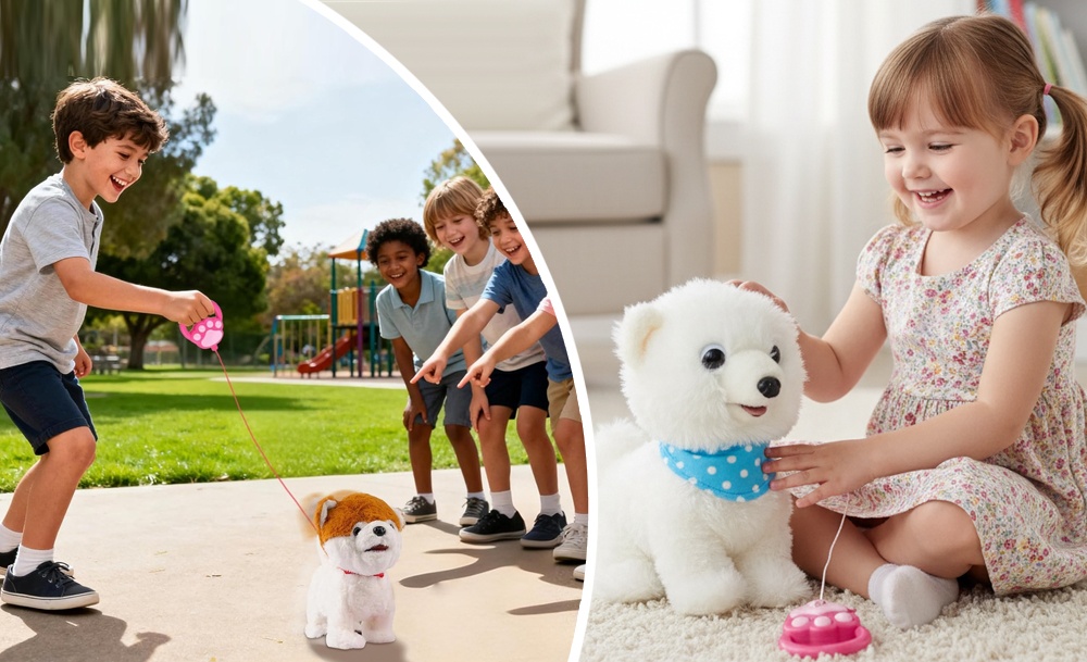Інтерактивний собачка на поводку — це кумедна іграшка, яка стане чудовим другом для дитини. Вона вміє ходити, гавкати, співати та рухати язичком, створюючи відчуття справжнього улюбленця. Керування іграшкою просте та інтуїтивне, що дозволяє дитині легко взаємодіяти з песиком та розвивати почуття турботи. Іграшка також допомагає дитині навчатися відповідальності, доглядаючи за своїм віртуальним улюбленцем.