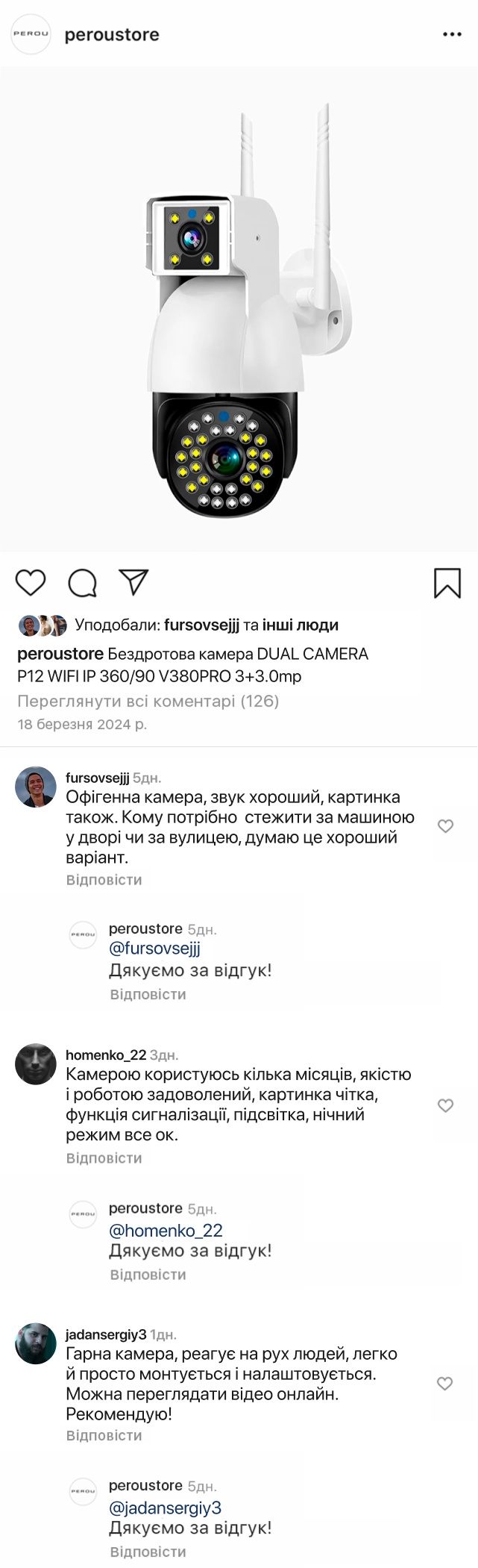 Камера P12 обладнана функцією повороту на 360°, що дає максимально широко охоплювати територію. Завдяки якісній матриці 3 Мп, ви отримаєте чіткі та яскраві зображення.