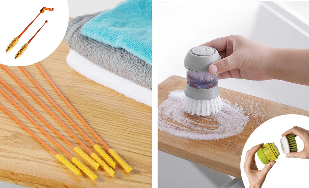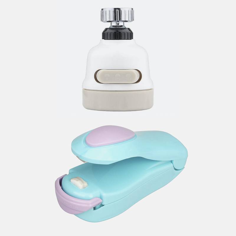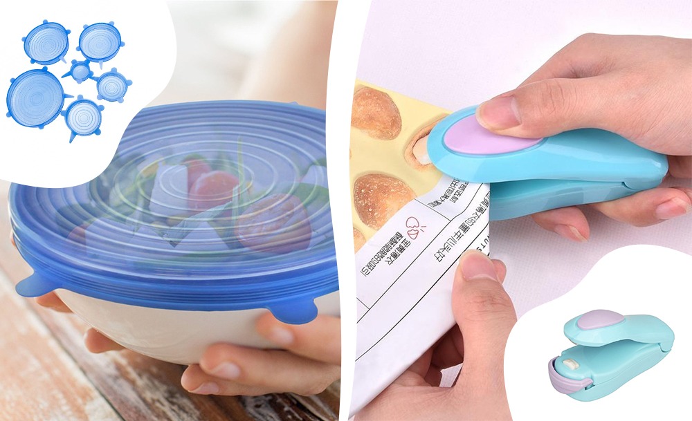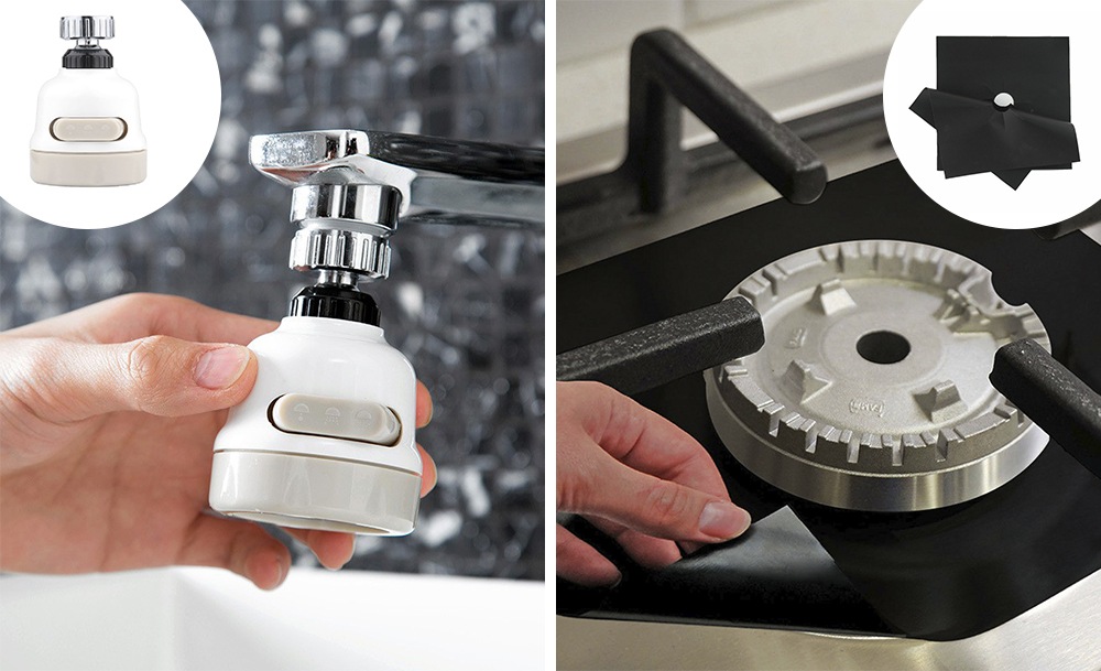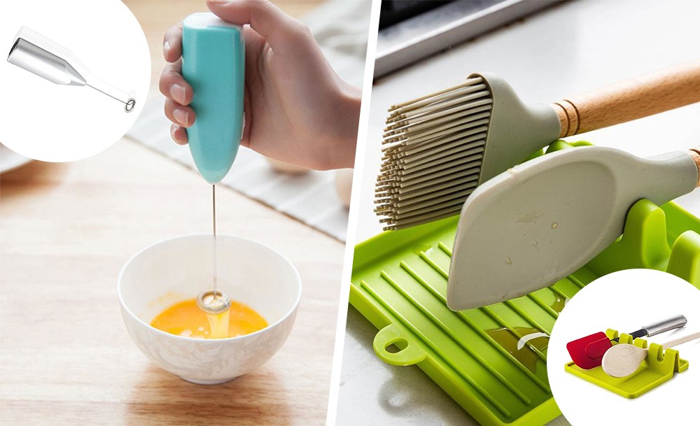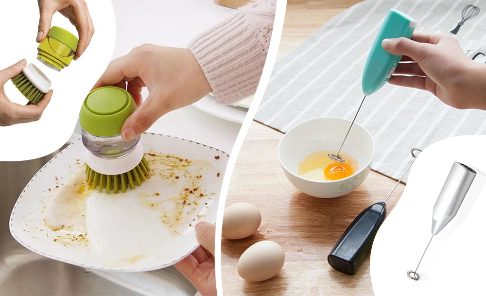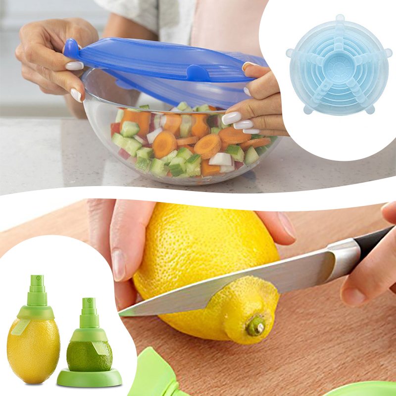 Навести порядок на кухні та організувати простір допоможуть підставка під ложки, силіконові універсальні кришки і ручний запаювальник пакетів. Насадка на кран допоможе заощадити витрати води, а щітка з дозатором для мила зробить миття посуду більш продуктивним. Міксер для вершків і спрей для цитрусових 3 в 1 зроблять ваші страви ідеальними.