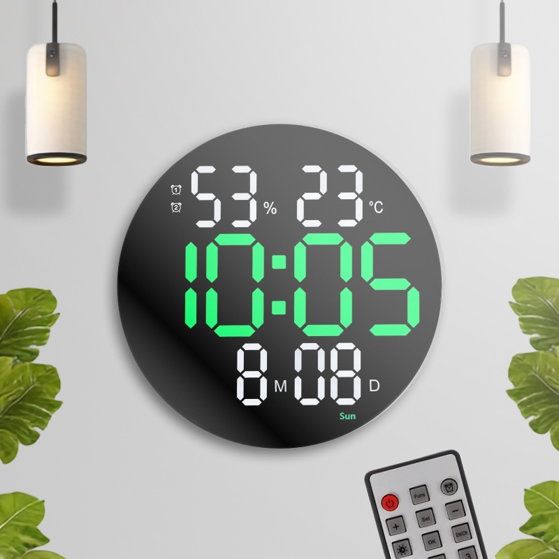 Круглий настінний годинник 3813L, виконаний у чорному корпусі з яскравим підсвічуванням великих цифр, забезпечує зручність використання у будь-якому інтер’єрі. Пристрій одночасно показує час, дату, день тижня, температуру та вологість повітря, дозволяючи завжди бути в курсі ключової інформації.