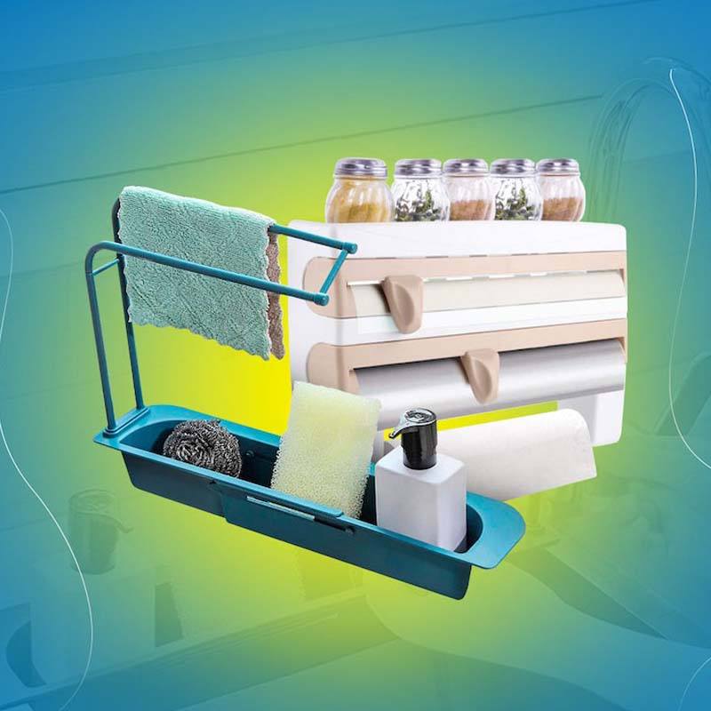 Кошик для раковини дозволяє зручно впорядкувати губки та ганчірки, а також зливати рідкі харчові відходи, запобігаючи засміченню кухонних труб.