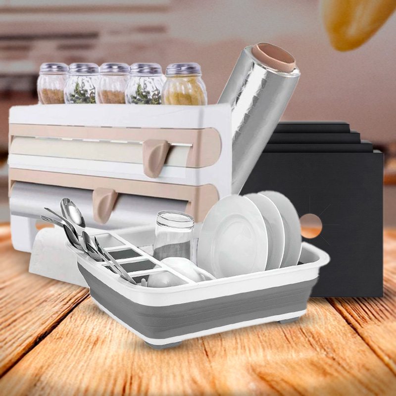 Зручний кухонний тримач неабияк полегшить життя господиням! Можна використовувати для харчової плівки, фольги та паперових рушників. Силіконова розкладна сушарка для посуду оснащена решіткою і спеціальним дном для вертикальної установки кухонного приладдя та тарілок.